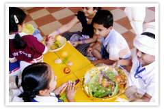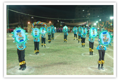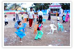To foster robust competitions among students the tiny school is divided into four houses. The Red's (in red dress on wednesdays), The green's (in green dress) the Blue's(in Blue dress) and so on... Regular inter house competitions are held to develop the competitive spirit among groups and co - operative spirit within groups.